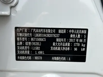 本田 本田缤智 2017款 1.5L CVT两驱舒适型